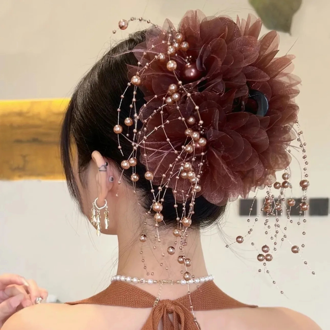 1. Elegant mesh flower design: Ladies elegant mesh Flower hairpin adopts a unique mesh flower design, full of female beauty and vitality, can be used in different occasions, fully show your elegant temperament.