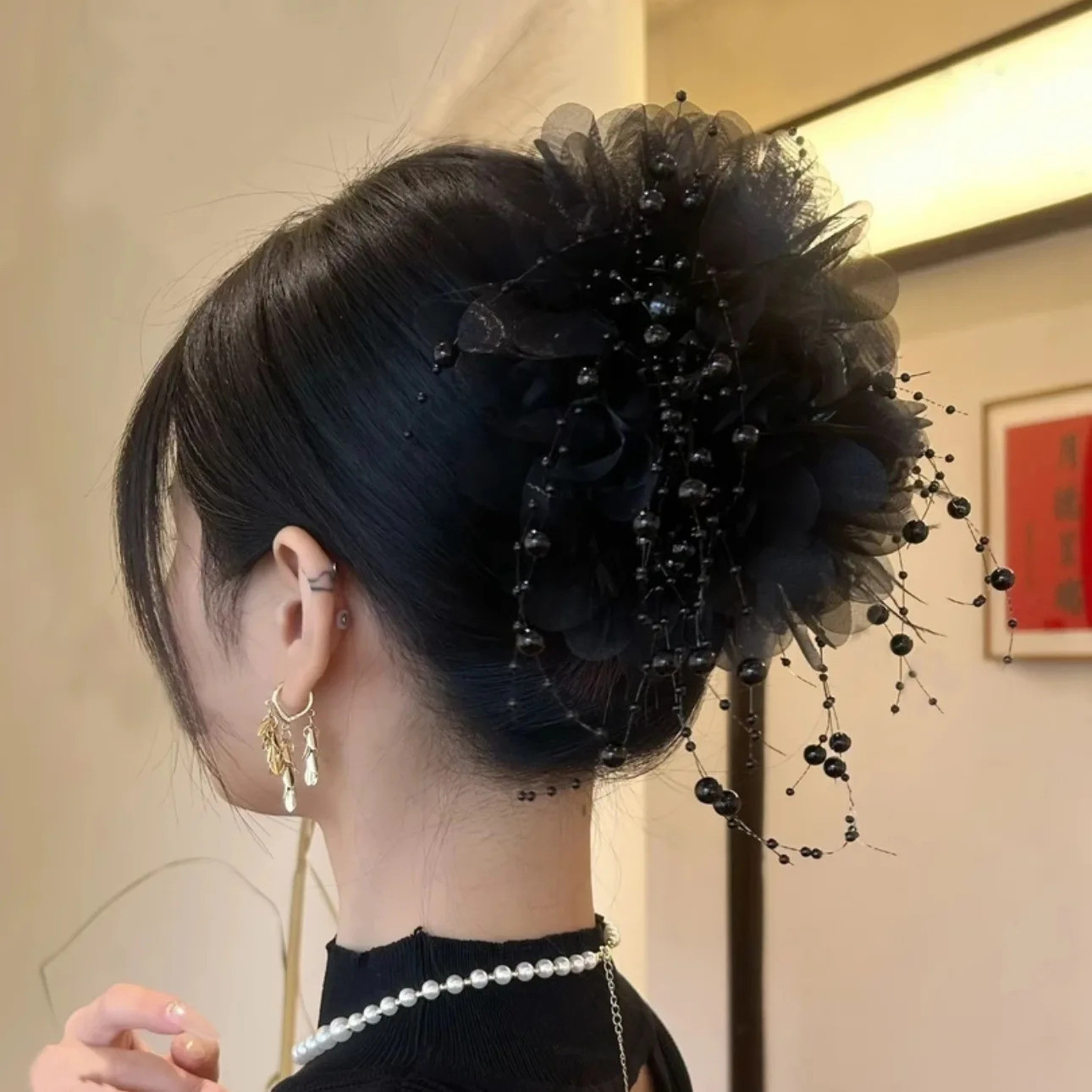 2. Exquisite pearl tassels: The design of the pearl tassels on the hairpin is elegant and unique. The flowing lines and crystal pearls flow lightly like spring water, which increases the ornamental value of the hairpin and makes the whole shape more layered.